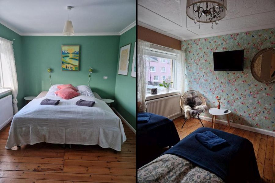 Knus guesthouse in het pittoreske vissersdorpje Sørvagur. De 3 kamers zijn gelegen op de bovenetage en hebben een TV en gratis wifi. Sommige kamers kijken uit op de zee of de bergen. 2 Gedeelde badkamers op de gang. Er is een gemeenschappelijke keuken, waar je zelf je ontbijt of maaltijden kan bereiden. Op de benedenetage is het sfeervolle, met veel curiosa ingerichte, Cafe Fjørdoy gevestigd, waar je ’s avonds kunt eten. Torshavn 48 km. 3 Km van de luchthaven Vagar. Vanuit Sørvagur vertrekt de ferry naar het vogeleiland Mykines. Vlakbij het fraaie Sørvagsvatn meer, dat op een hoge klif ligt, met de Bøsdalafossar waterval.